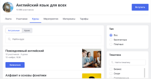 Находите интересные сообщества по фильтру поиска, чтобы присоединиться к единомышленникам или найти актуальную информацию.